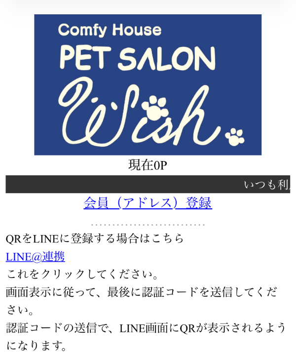 ログイン画面は当店のInstagram@petsalonwishのプロフィールリンク「ポイントカード」からログイン画面を開くことができます。