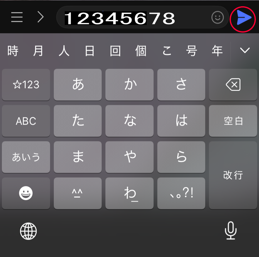 公式LINEトーク画面に認証コードが入力された状態で表示されますので、そのまま変更せず送信してください