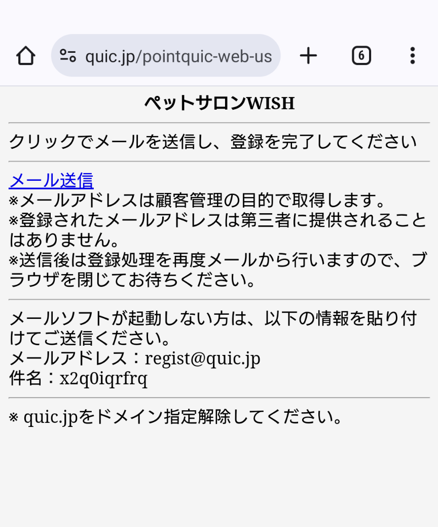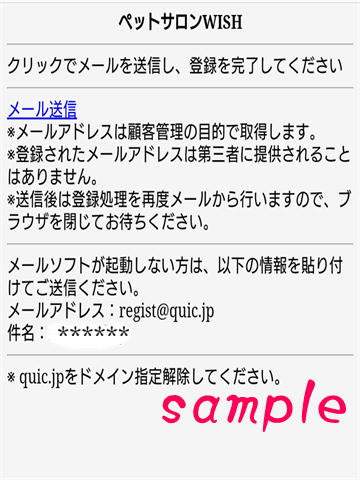 登録用返信メールが届かない場合は、迷惑メール設定でquic.jpを受信できるように指定してください