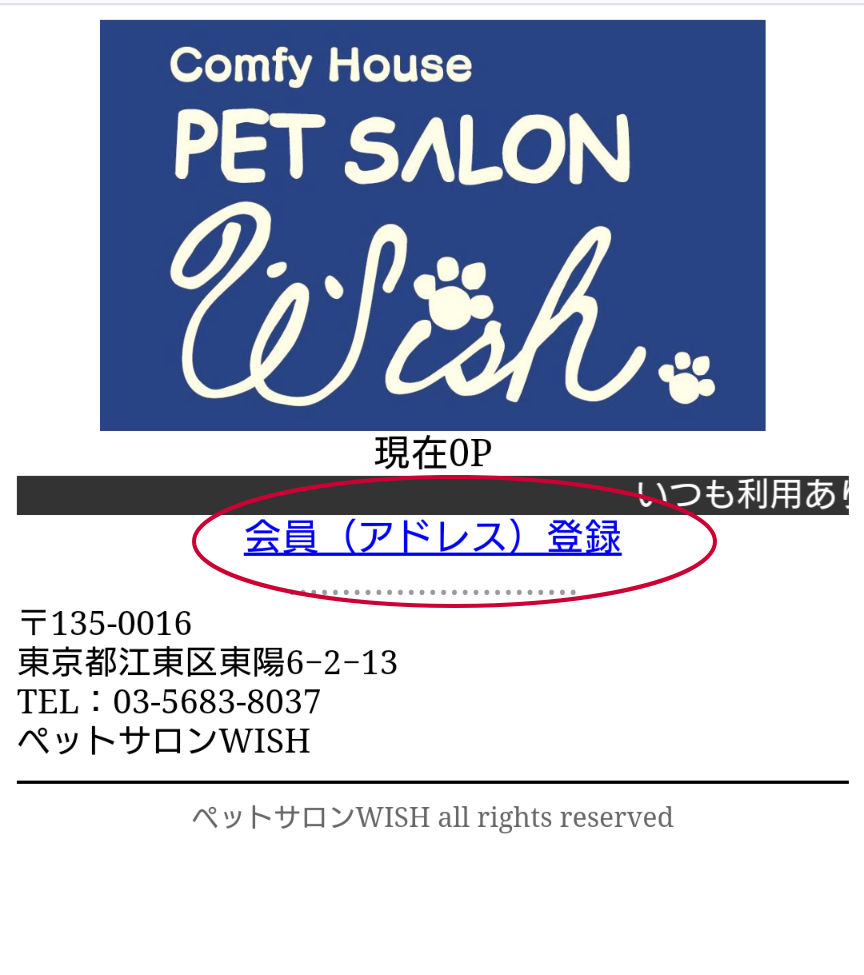 ログイン画面は当店のInstagram@petsalonwishのプロフィールリンク「ポイントカード」からログイン画面を開くことができます。